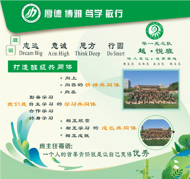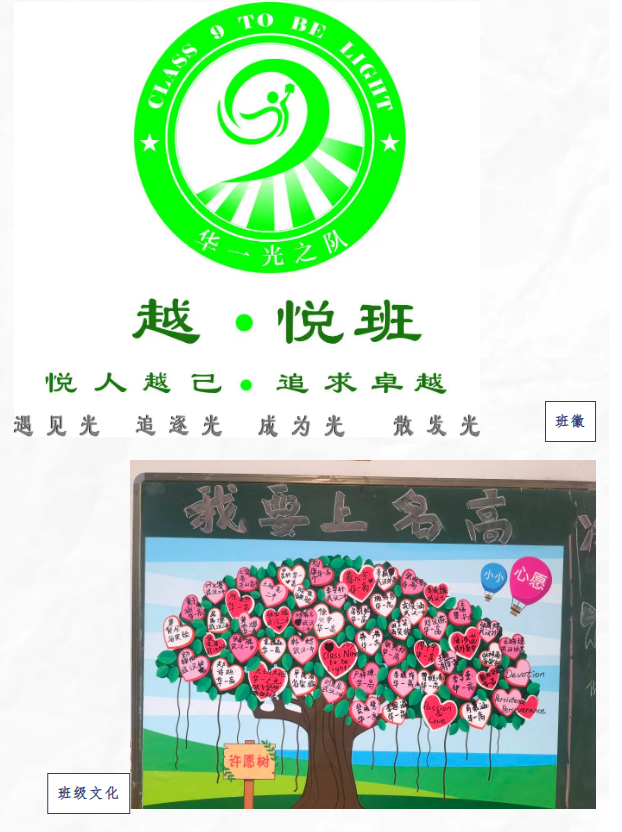 2. 班級口號:“9班9班,華一之光;放飛夢想,直面陽光。”;