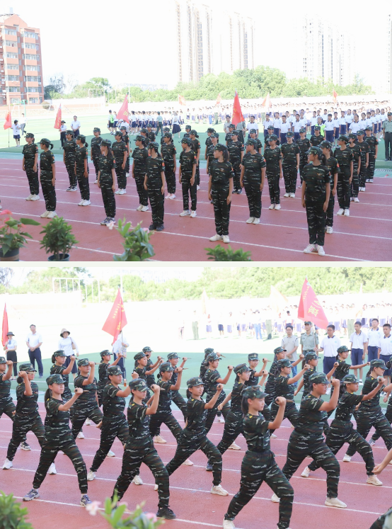 獵獵紅旗,沙場(chǎng)點(diǎn)兵。9月1日下午,我校在運(yùn)動(dòng)場(chǎng)舉行2023級(jí)新生國(guó)防教育閉營(yíng)儀式。2023級(jí)新生們身著統(tǒng)一校服,氣宇軒昂,焦灼中帶著興奮與期待,等待著最終的展示。