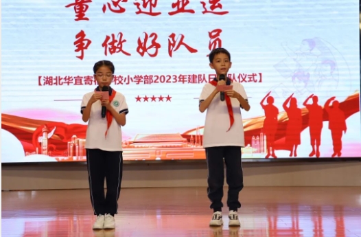 隊旗飄飄,融入生命和血液;星星火炬,點燃信念的火,照亮心靈的燈。在中國少年先鋒隊建隊74周年之際,我校小學(xué)部于10月12日舉行了“童心迎亞運,爭做好隊員”少先隊入隊儀式。