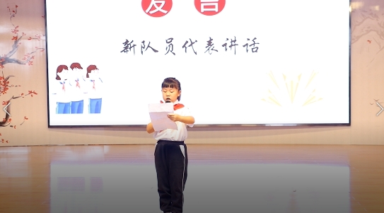 202班新隊員代表應(yīng)岑昕用稚嫩而堅定的聲音,表達對老師們的感激和作為少先隊員的喜悅與自豪,并表示會嚴格要求自己,向身邊的榜樣學(xué)習(xí),努力成為一個善良、熱情、正直、誠實、積極的人,成為祖國優(yōu)秀的接班人。