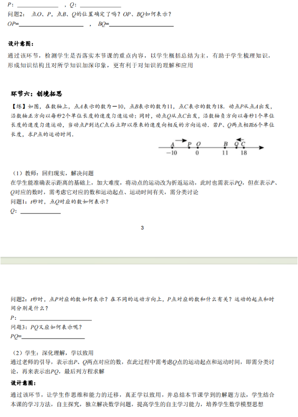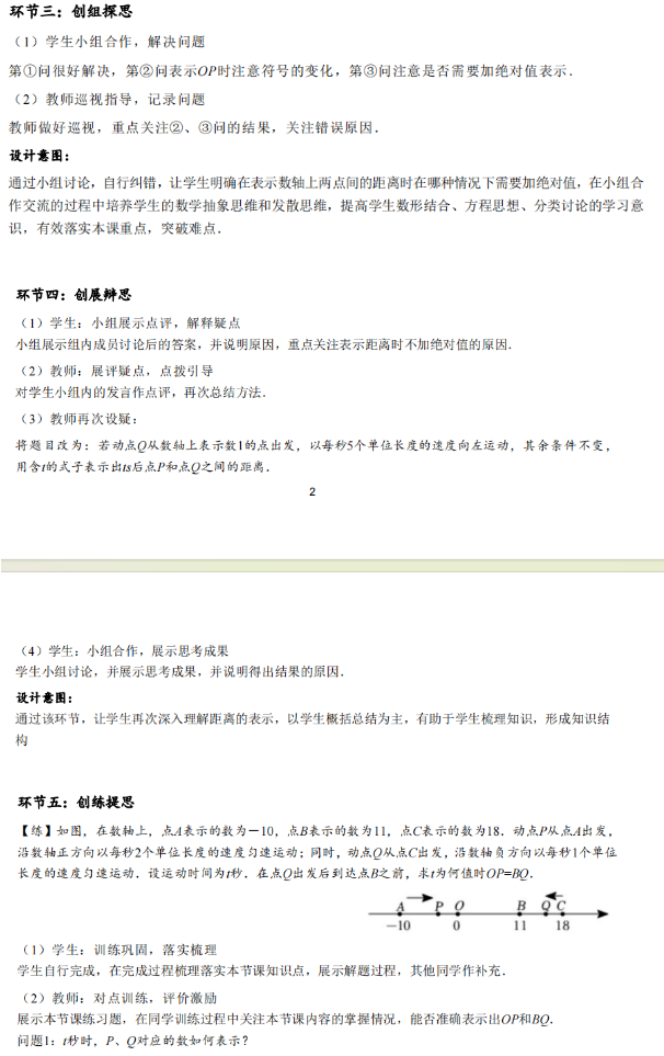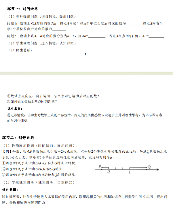 曹老師針對(duì)教學(xué)內(nèi)容進(jìn)行分析,強(qiáng)調(diào)本節(jié)課是以數(shù)軸上的動(dòng)點(diǎn)為背景的專題課,以距離問題為側(cè)重點(diǎn),要求學(xué)生在能夠準(zhǔn)確表示數(shù)軸上的動(dòng)點(diǎn)對(duì)應(yīng)的數(shù)和兩點(diǎn)間的距離的基礎(chǔ)上,正確運(yùn)用線段間的關(guān)系解決問題,集幾何、代數(shù)知識(shí)于一體,融數(shù)形結(jié)合、分類討論、方程思想于一身,綜合難度較大,本節(jié)課意在著重培養(yǎng)學(xué)生的抽象能力、數(shù)形結(jié)合能力、推理能力及運(yùn)算能力。