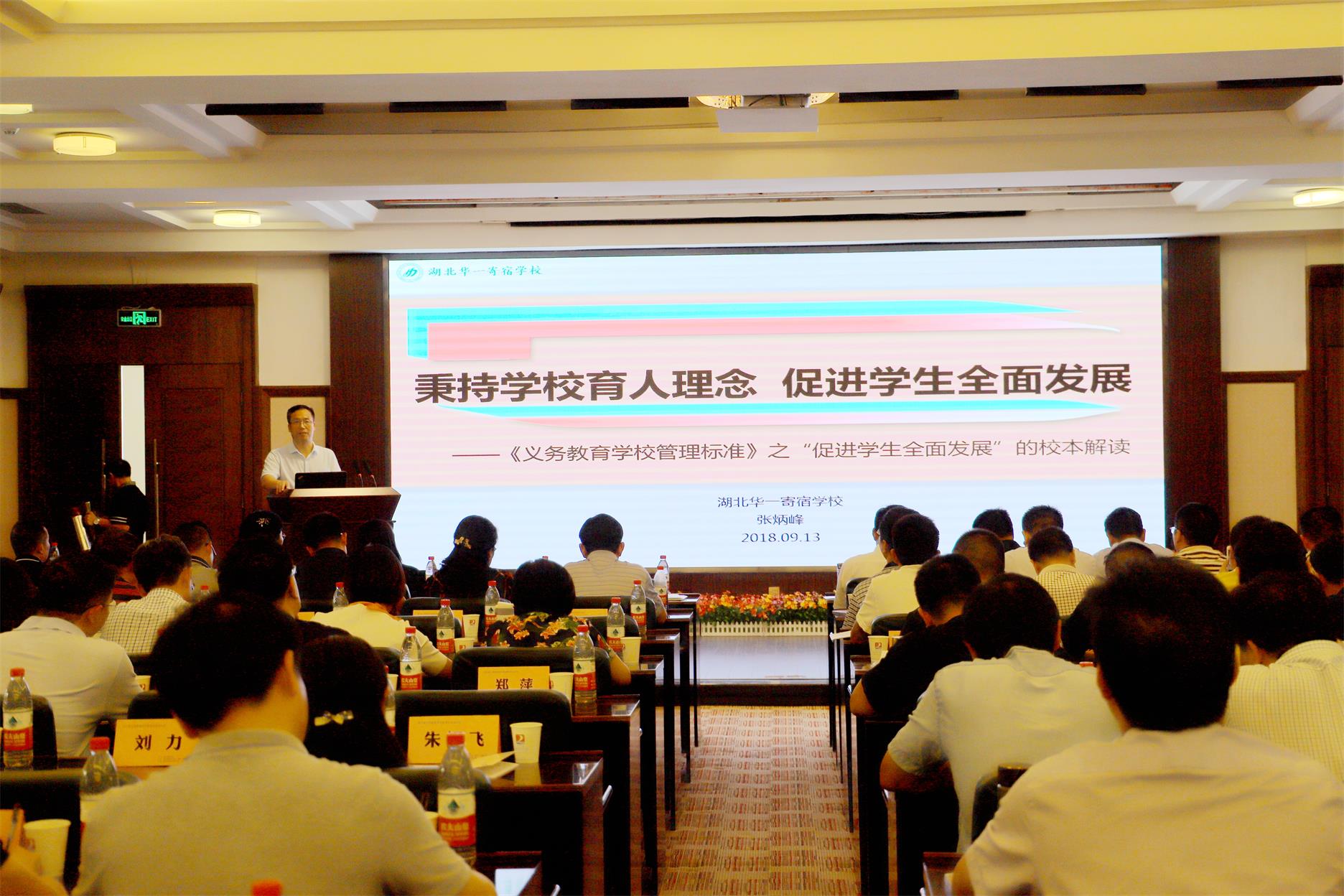 2018年9月13日下午2時,我校張炳峰校長應(yīng)湖北省教育廳的特別邀請,在武漢東風(fēng)賓館報告廳為230多位專家校長,就《義務(wù)教育學(xué)校管理標(biāo)準(zhǔn)》中關(guān)于“促進(jìn)學(xué)生全面發(fā)展”的內(nèi)容作了一場“秉持學(xué)校育人理念,促進(jìn)學(xué)生全面發(fā)展”的專題報告。